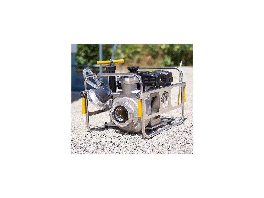 Čerpadlo so spaľovacím motorom s patentovaným obežným kolesom Spechtenhauser, utesnené dvojitým mechanickým tesnením vhodným pre suchú a nepretržitú prevádzku, rýchle nasávanie až do sacej výšky 7 m s manuálnym dvojzdvihovým piestovým čerpadlom Spechtenhauser, inštalovaným v prepravnom koši z nehrdzavejúcej ocele