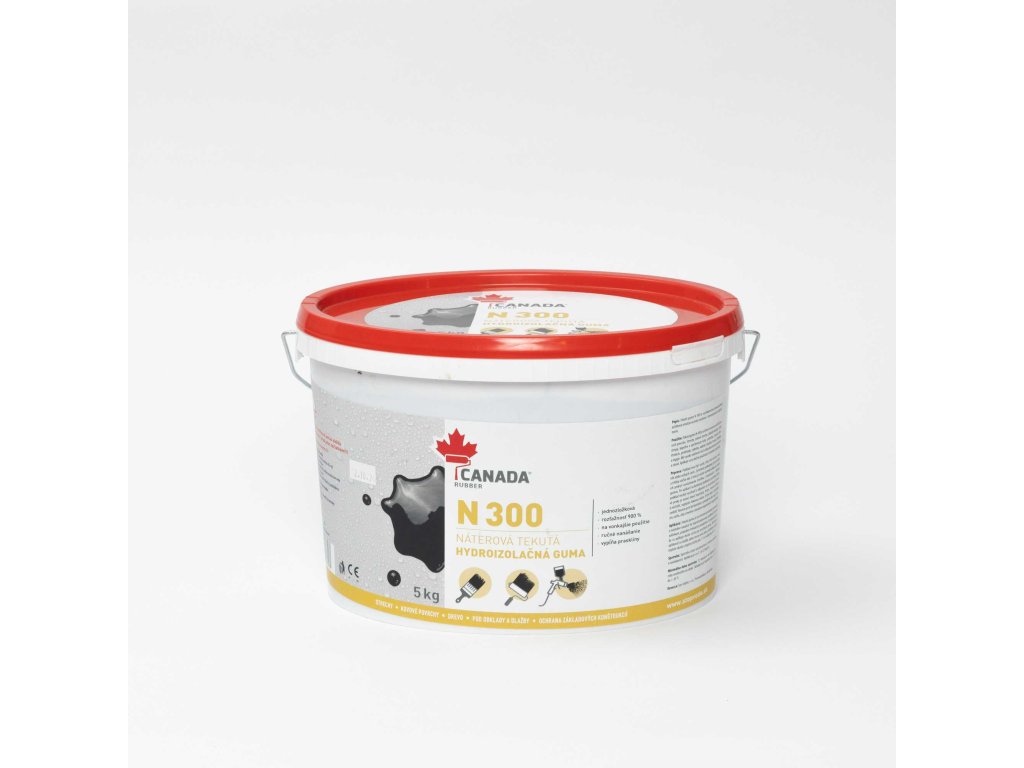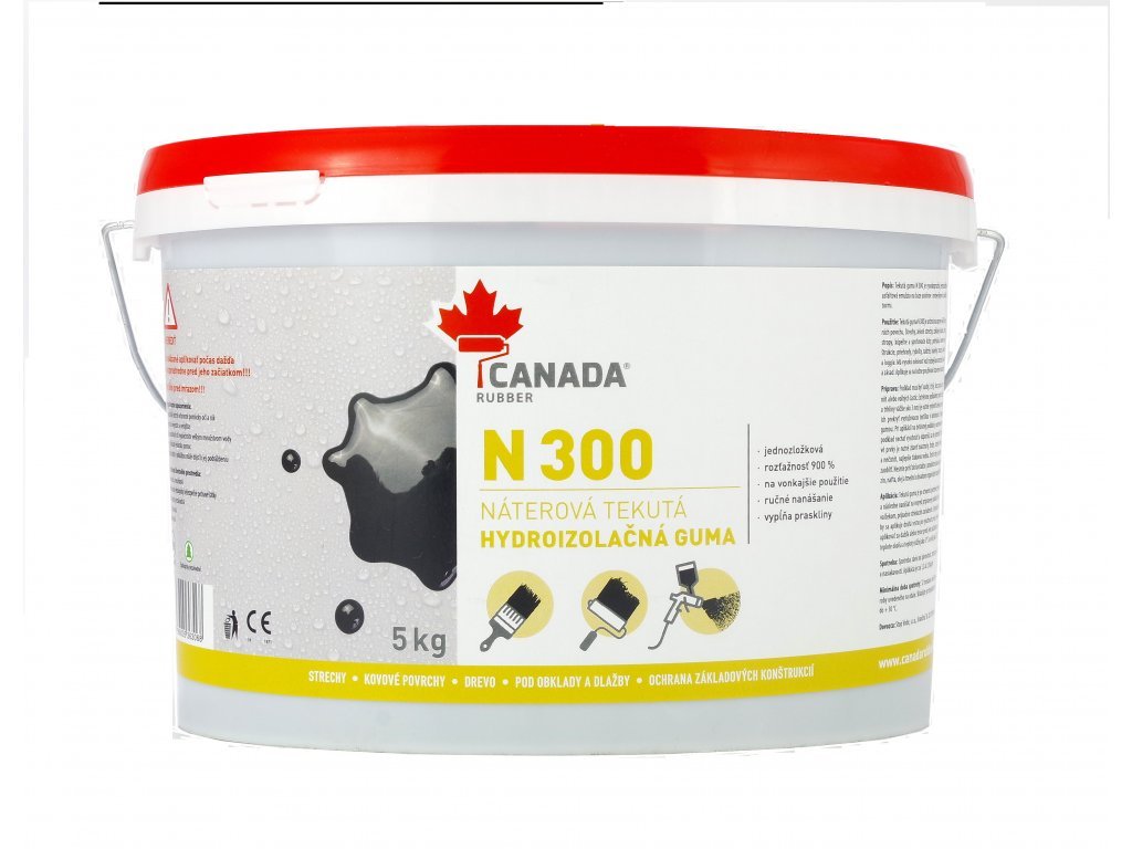 Náterová tekutá guma Canada Rubber N300 je zmes aniónového základu vysokoelastickej asfaltovej emulzie s minerálnymi stabilizátormi. Pružnosť dovoľuje efektívne zakrytie akejkoľvek podkladovej vrstvy a rovnako zabezpečuje dobrú odolnosť voči poveternostným podmienkam a degradácii podkladovej vrstvy. Nanáša sa na akýkoľvek stavebný povrch. Takto vytvorený hydroizolačný film má vysokú odolnosť voči malej koncentrácii kyselín a zásad a neovplyvňujú ju ani soli zo spodnej vrstvy. Nie je odolná voči benzínovým rozpúšťadlám. Canada Rubber N300 nie je UV-stabilná, to znamená, že nie je určená ako finálna hydroizolačná vrstva striech.