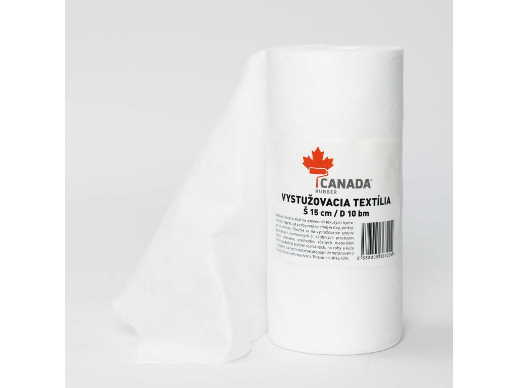 Vystužovacia textília netkaná, 10bm, 15cm šírka, 65g/m2. Slúži na spevnenie tekutých hydroizolácií, zapracuváva sa do prvej čerstvej vrstvy, prekrýva sa druhou. Vhodné pre produkty Canada Rubber v prípade, keď zložité detaily vyžadujú extra ohybnosť textílie pre dokonalé priľnutie výstužnej vrstvy.