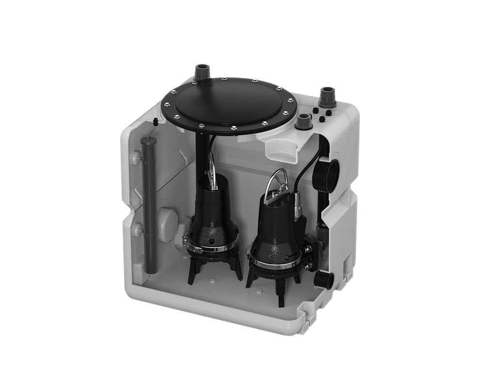 Zberná nádrž pre odpadové vody s celkovým objemom 270 litrov. Potrubie sa montuje na mieste s dvomi typmi čerpadiel SEG.