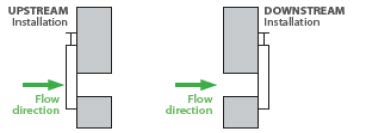 - inštalácia proti prúdu (pred stenou) UPSTREAM