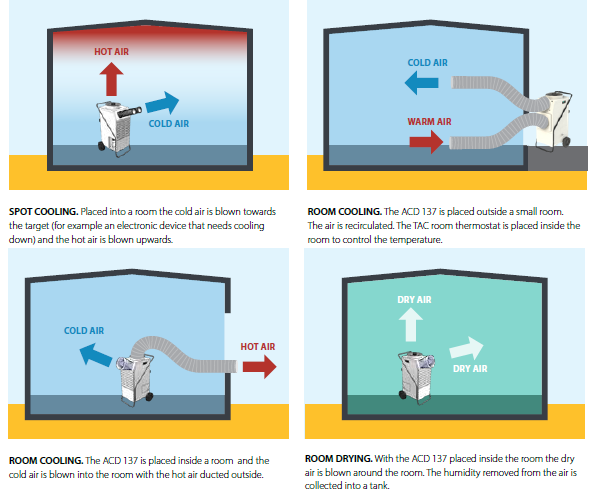 robustné zariadenie je vhodné predovšetkým v prípadoch dočasného chladenia a vysúšanie v stanoch, mobilných nemocniciach, pracovniach a predajných