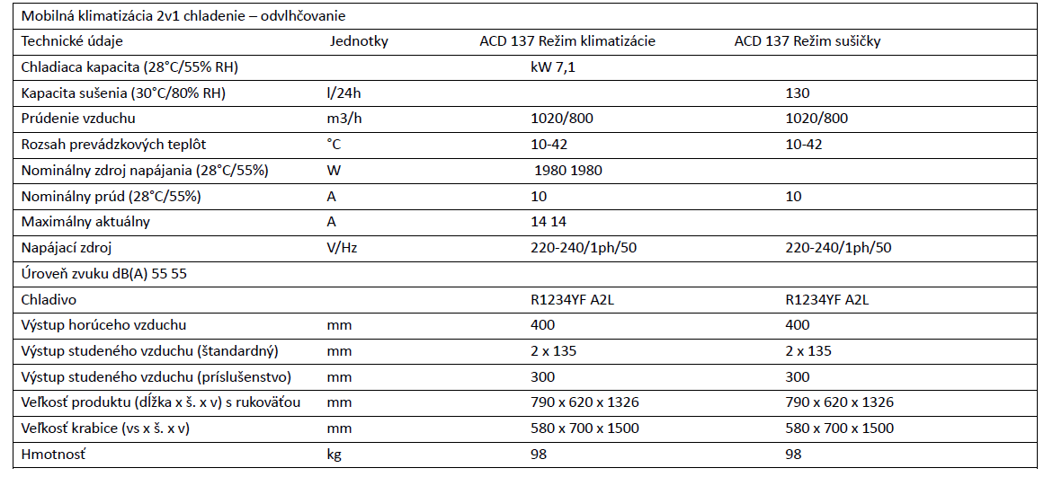 Mobilná klimatizácia 2v1 chladenie - odvlhčovanie ACD 137