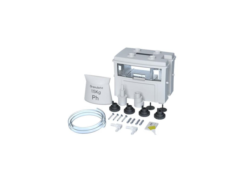 Neutralizačná jednotka pH+ BOX pre čerpadlá Conlift 1. Obsahuje 1,2 kg granulátu. Je vhodný pre aplikáciu s agresívnym kondenzátom s pH nižším ako 2,5.