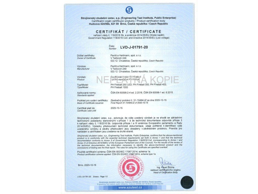 Osvetľovací balón PH-Fireball bol certifikovaný v SZU Brno.