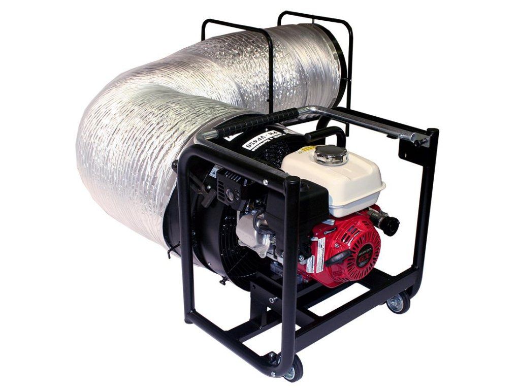 Má samozhášaciu schopnosť. Kombinácia týchto materiálov zaručuje dokonalú ohybnosť a pevnosť. Hadica je na jednej strane pevne spojená s prenosným transportným rámom. Druhý voľný koniec s prírubou je určený na upevnenie na ventilátor.