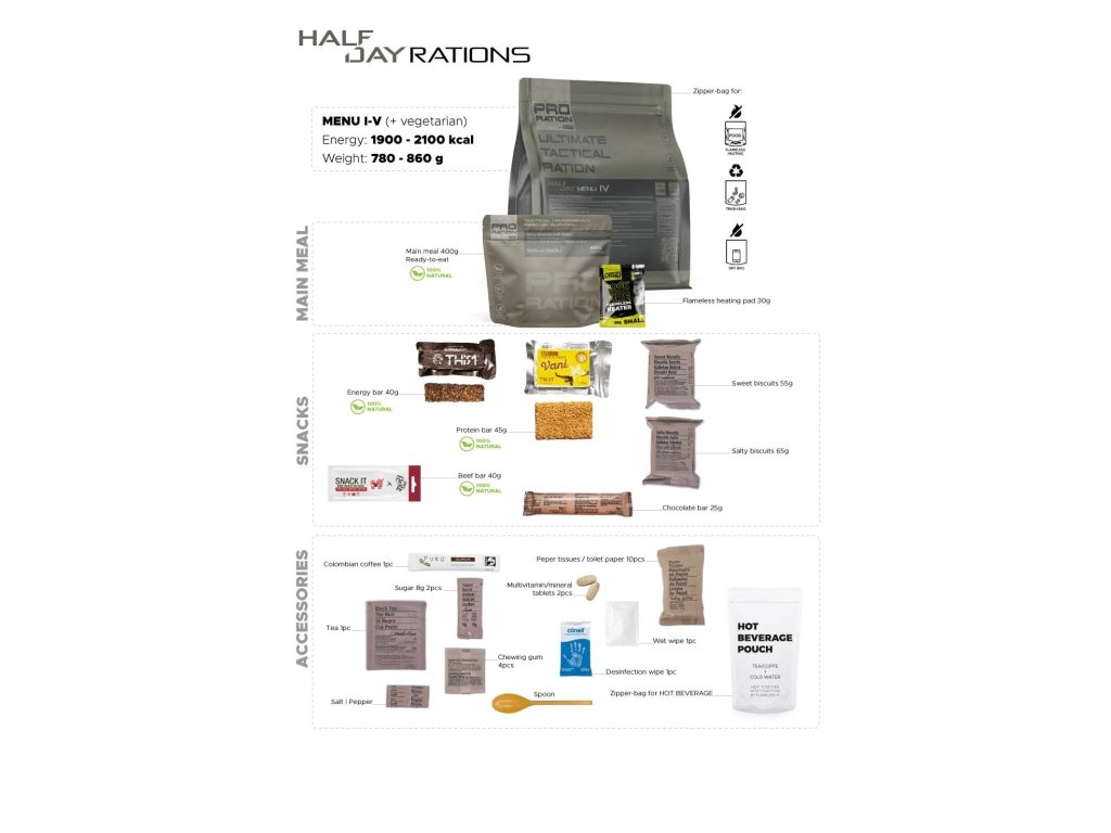 | Kategória: | Ultimate Tactical Ration HALF DAY- pól dňa - 1x hlavné jedlo |