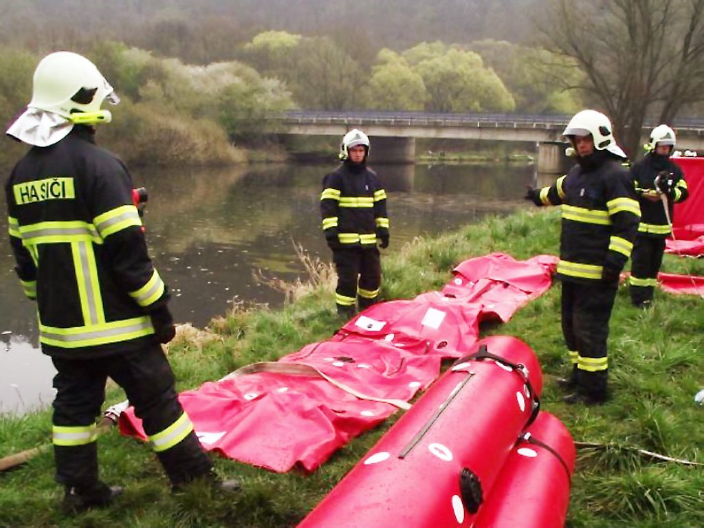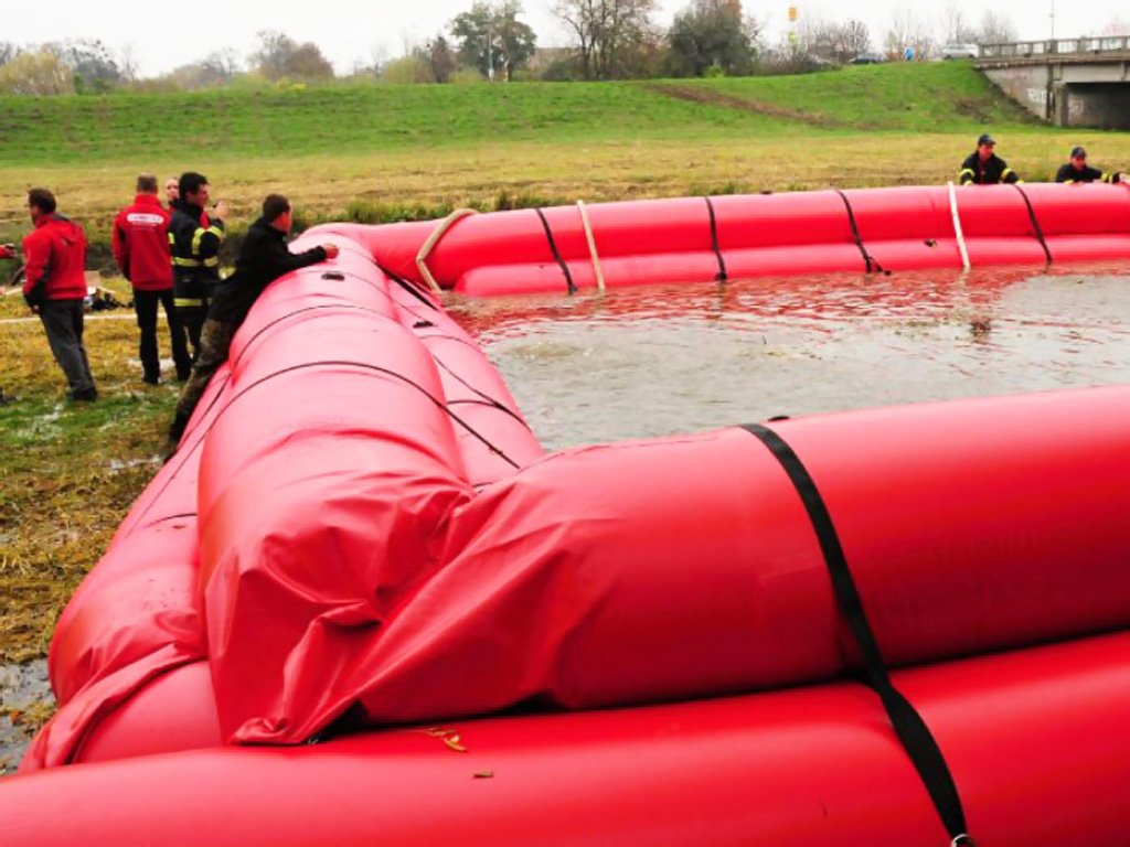 Valcové protipovodňové zábrany s dĺžkou 10 m plnené vodou.